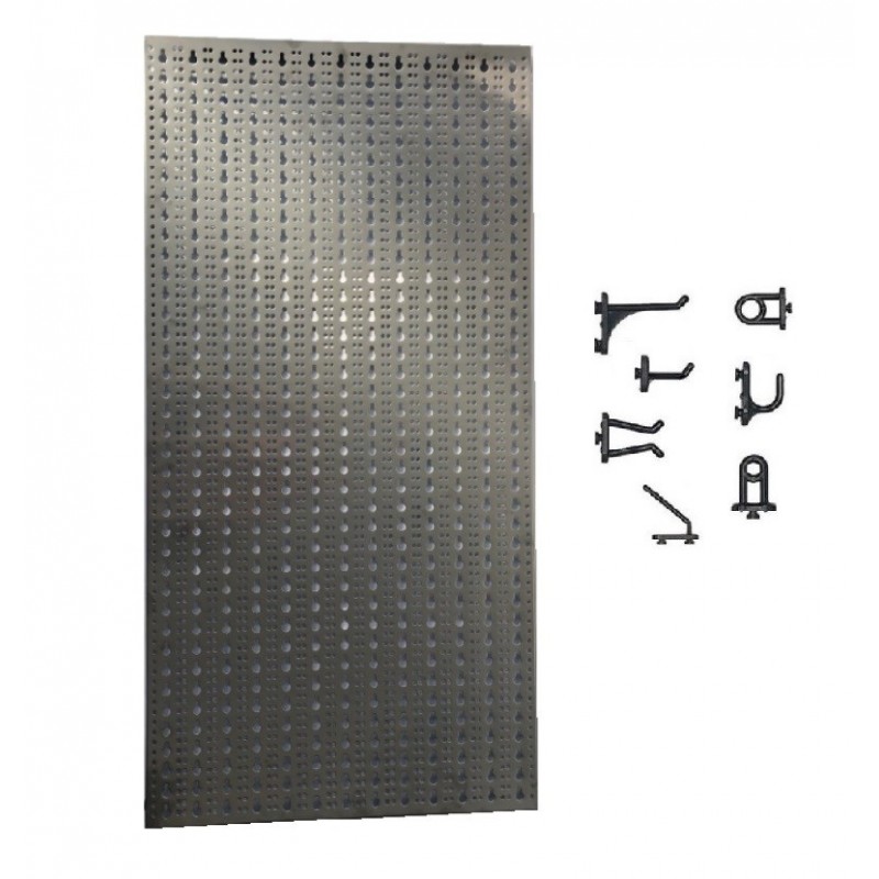 Panou perforat vertical din INOX, 1000x500mm cu set 20 carlige plastic